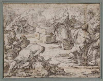 Elijah and the Prophets of Baal. Unsigned. Black chalk, drawing ink and wash on paper. Sheet size 355×583 mm. | |