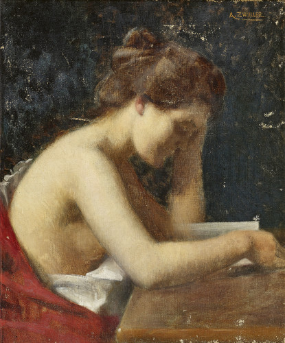 Weiblicher Halbakt bei der Lektüre