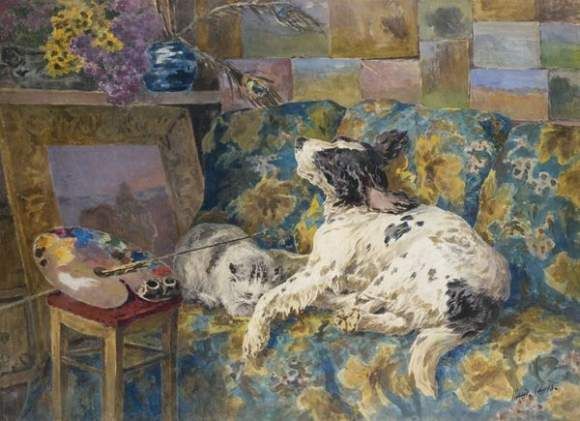 Chien et chat dans l'atelier du peintre