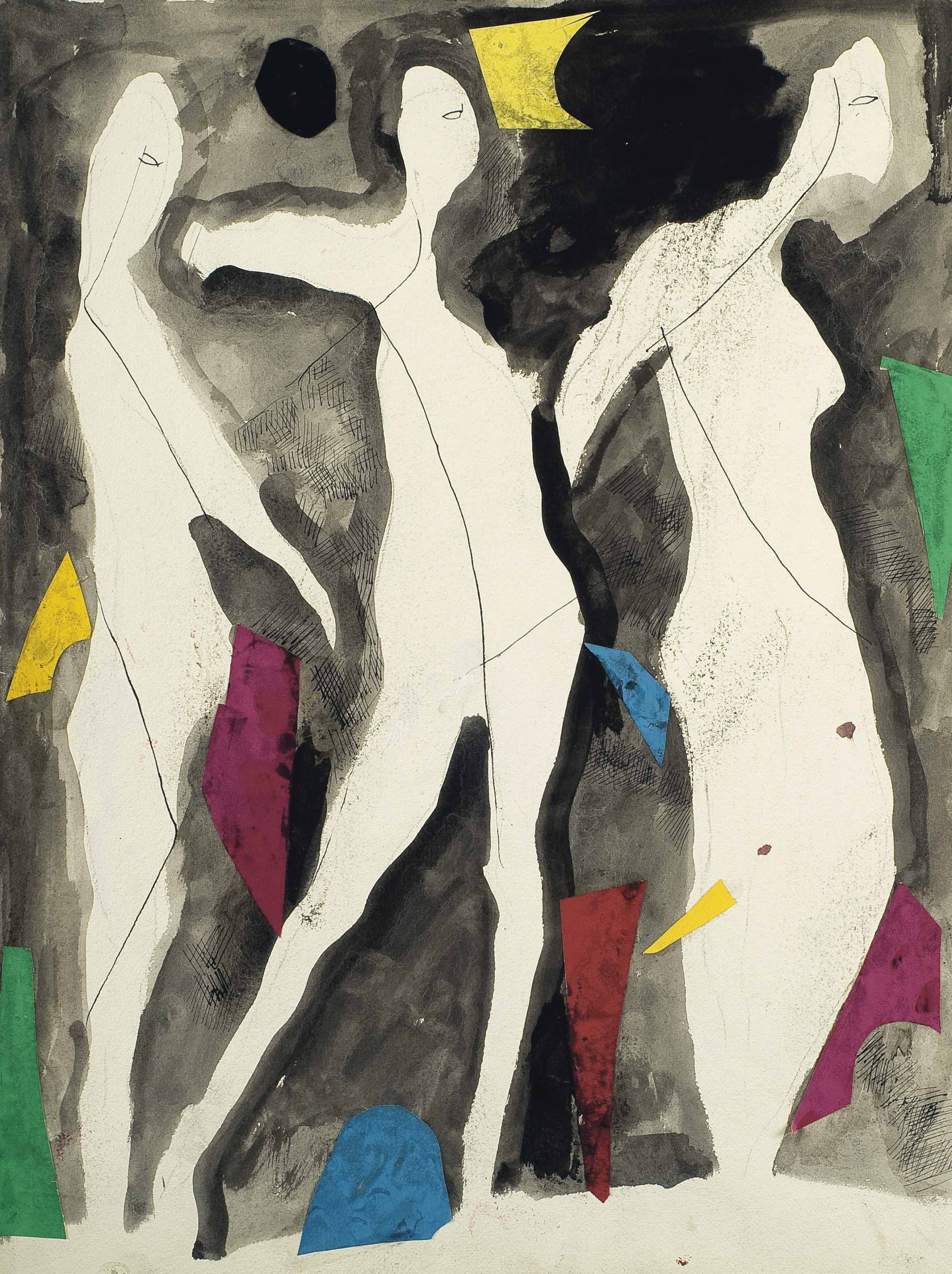 | Gouache pen and India ink and paper collage on paper laid down on canvas | |