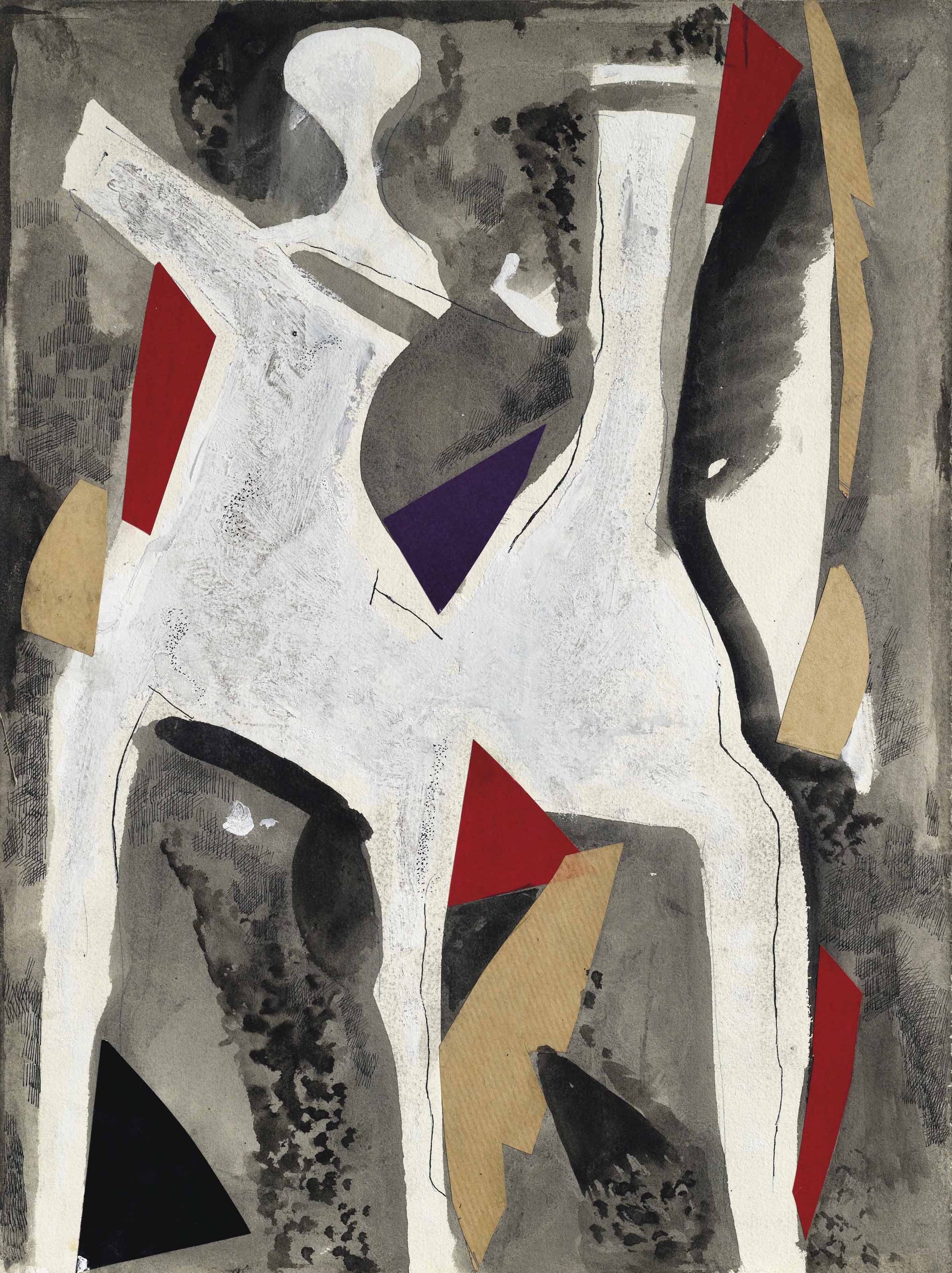 | Gouache India ink, wash and collage on paper laid down on canvas | |