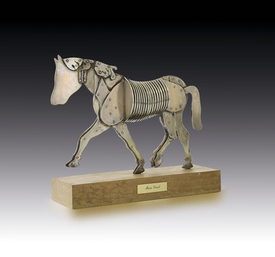 scultura in argento su basamento in legno 24x28x9 cm., firma sullo zoccolo destro, esemplare 10/10, dichiarazione d'autenticità dell'artista datata 2012 su foto | |