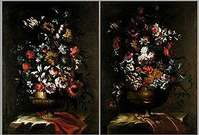 STILLLEBEN MIT BLUMEN IN VASE AUF DRAPERIE