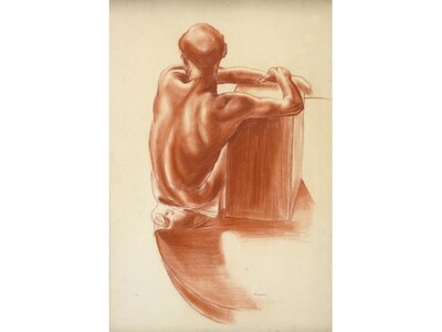 STUDY OF A SEATED MAN FROM BEHIND