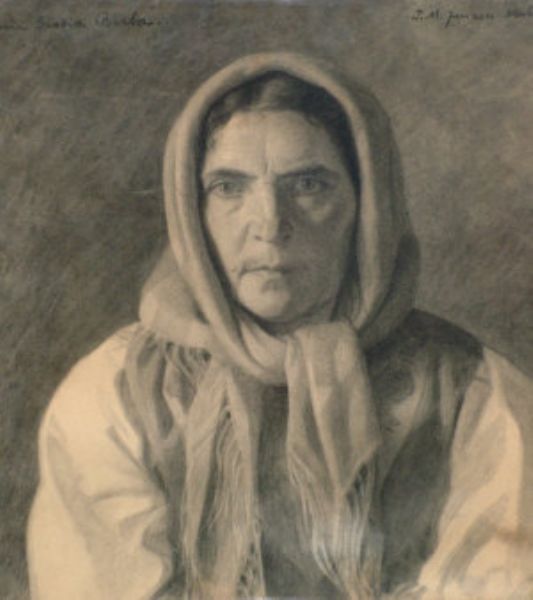 Portrait of a woman quarter-length in a head scarf
