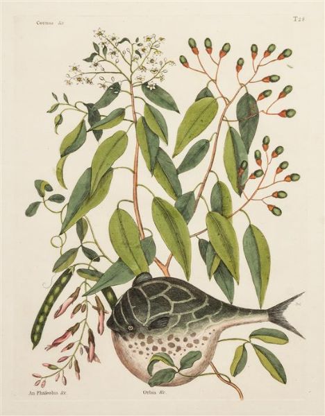 | Globe-Fish, tab. 28, The Green Gar Fish, tab. 40, The Herring, tab. 24 (a group of three works from The Natural History of Carol | |