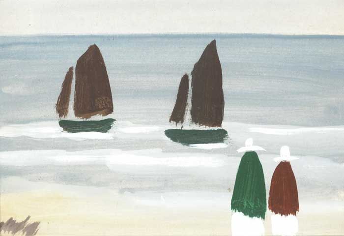 TWO SHAWLIES AND TWO BOATS BY THE SHORE