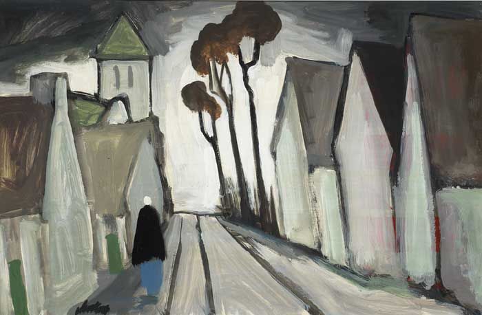 VILLAGE AND FIGURE AT DUSK