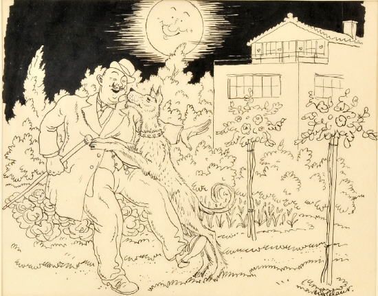 Fröhlicher Heimkehrer wird von einem Hund stürmich begrüßt