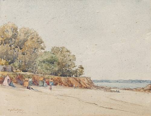 Beach scene with bathing huts