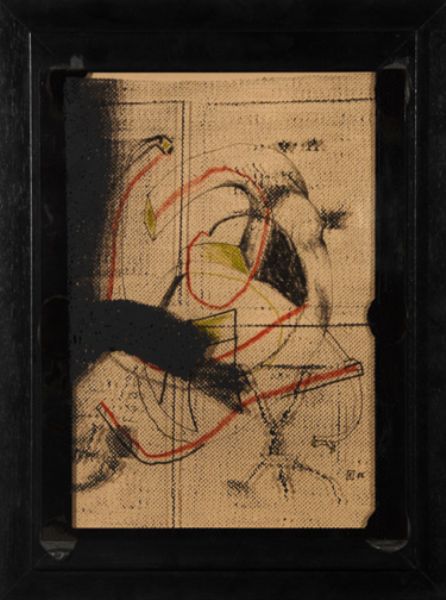 | Pencil and graphite on paper behind silkscreen on glass, mounted on wood frame | |