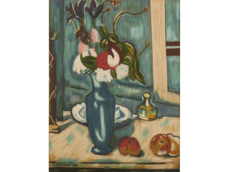 STILL LIFE OF FLOWERS AND FRUIT ON A TABLE