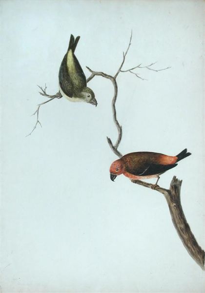 Crossbill Parrots on a Branch; and Two Blackbirds on a Branch