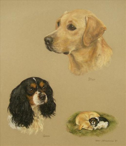'Star' and 'Gem', studies of a Labrador and a King Charles Spaniel