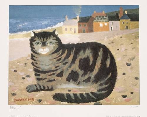 Cat on a Cornish Beach; Red Sunset