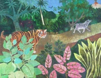 Tropical forest with tiger and zebra
