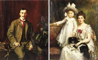 | Portrait of Charles William Dyson Perrins (1864-1958), seated-three-quarter-length, a cigar in his right hand, a rifle under his | |