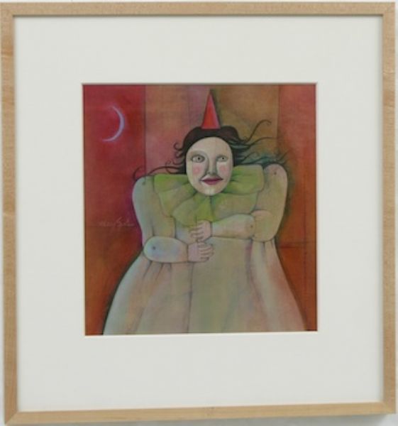 Woman with Mask, Hat and Moon