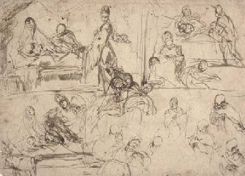 | Three studies for the Birth of the Virgin with subsidiary studies of the principal figures | |