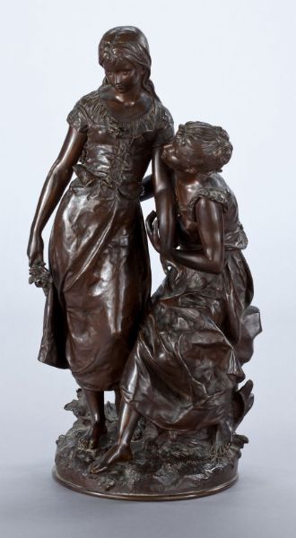 A FRENCH PATINATED BRONZE FIGURAL GROUP