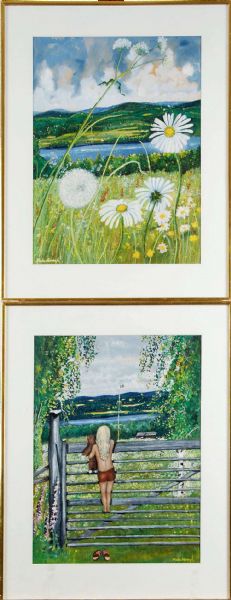 Sommaräng från Dalarna resp Flicka vid gärdesgård