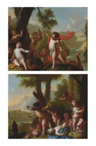 | Putti disporting in a river landscape; and Putti disporting in a landscape | |