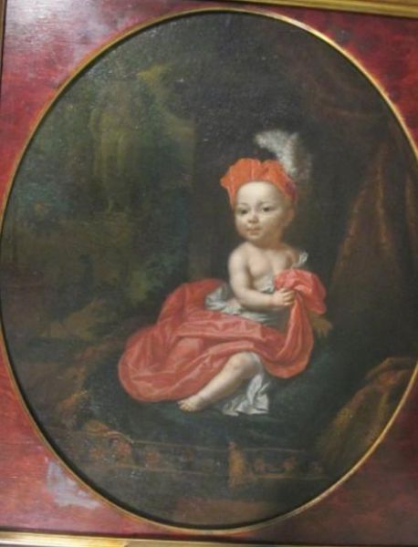 Jeune prince assis de trois-quarts sur un coussin de velours