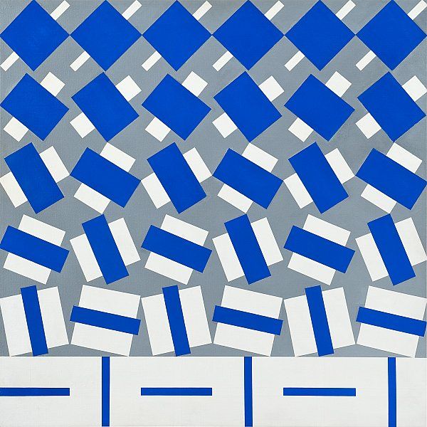 COMPOSITION IN GRAY, BLUE AND WHITE