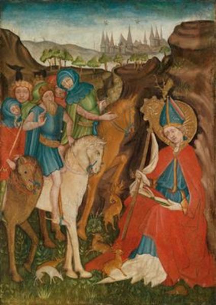 Saint Blaise discovered in his cave by huntsmen