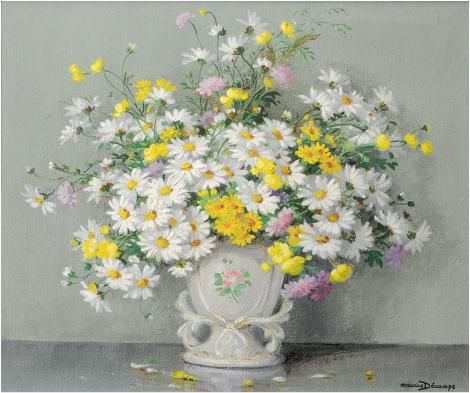 Marguerites dans un vase de porcelaine