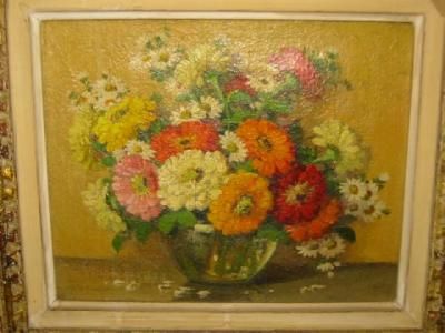 Zinnias,Still Life with Flowers in a Glass Vase