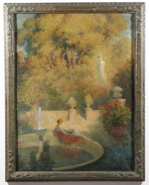 Woman Seated by Fountain