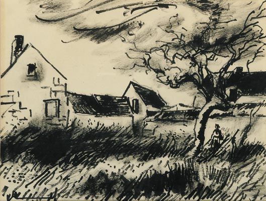 PAYSANNE DANS UN CHAMP PRÈS D'UN VILLAGE