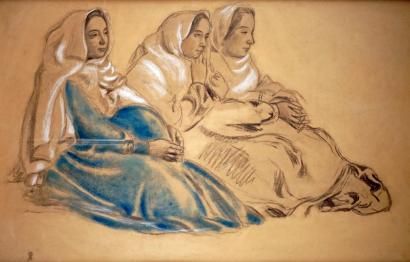 ÉTUDE DE FIGURES ASSISES POUR "L' HOMMAGE À L'ENFANT JÉSUS"