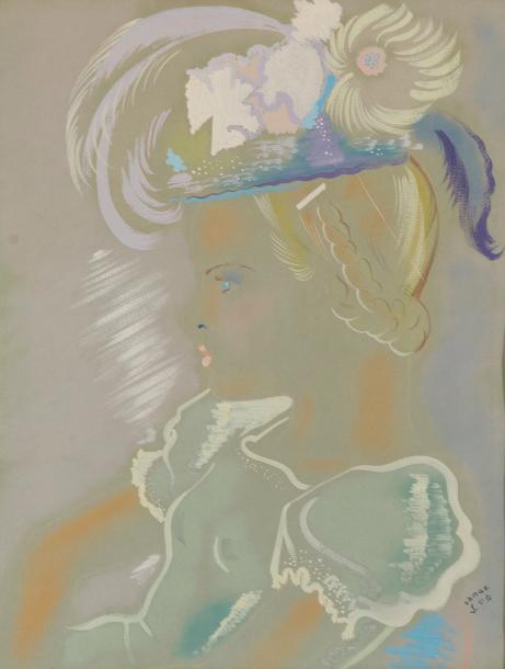 | Young woman in profile hat. | |