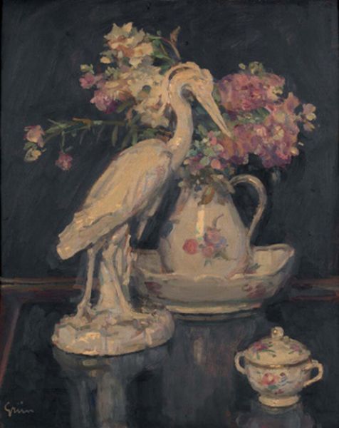 FLEURS DANS UN VASE ET COUPE D'ARGENT