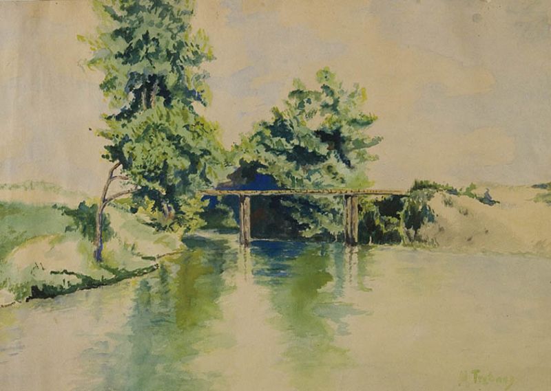 PEJZAŻ Z RZEKĄ I MOSTKIEM
