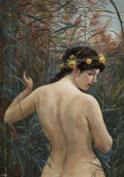 Weiblicher Rückenakt im Schilf