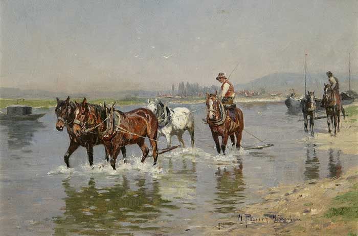 Pferde und Reiter am Main