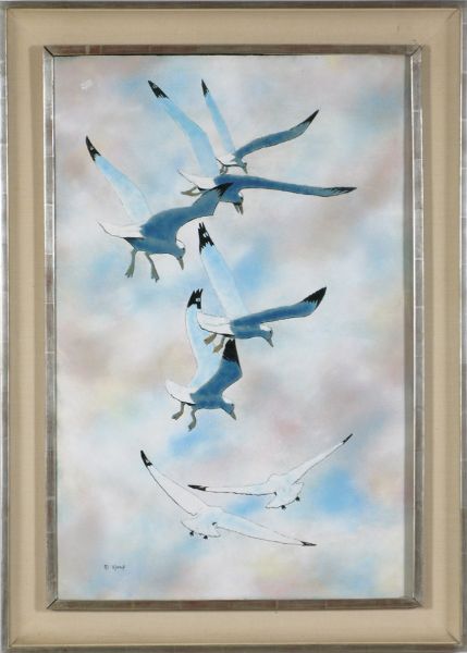 Sea gulls in descent