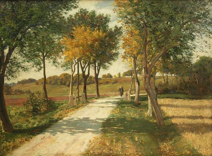 Spaziergänger in spätsommerlicher Landschaft