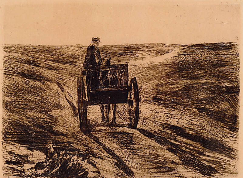 Bauer mit seinem Karren auf dem Heimweg