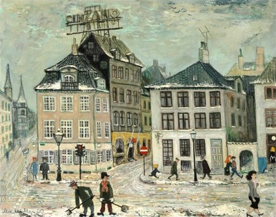 Street scene, Copenhagen. Corner of Nyhavn and Bredgade. Signed Max Müller 60. Oil on canvas. 64×81 cm. | |