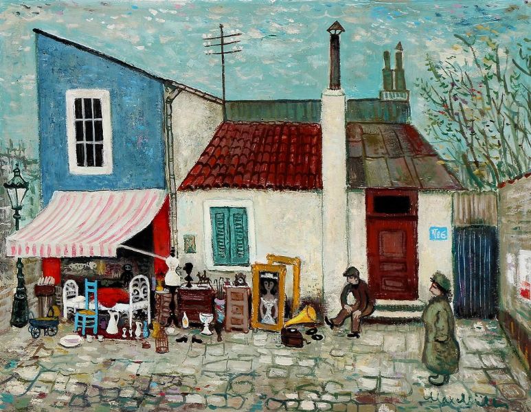 View from Paris with an antique shop.
