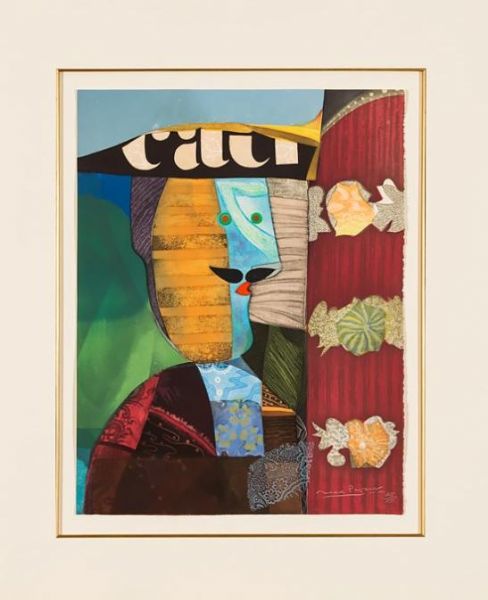 Aquatint in colors with embossing on wove paper