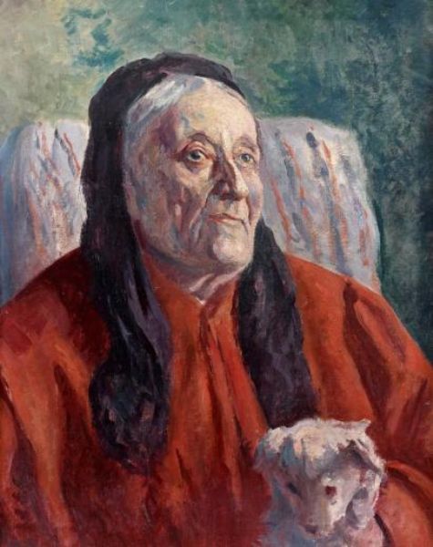 L'aïeule au caniche, au verso, étude d'un coucher de soleil sur l'étang
