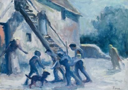 SCÈNE ANIMÉE DEVANT LA FERME