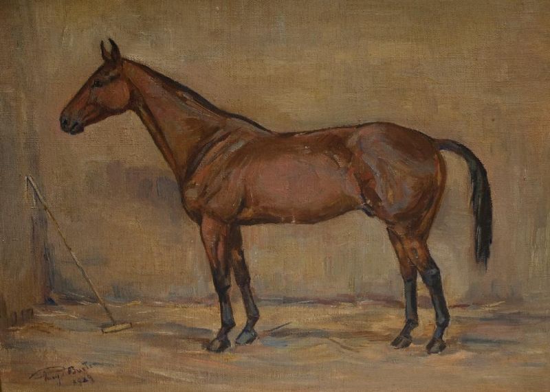 STUDY OF A BAY HUNTER IN A LOOSE BOX