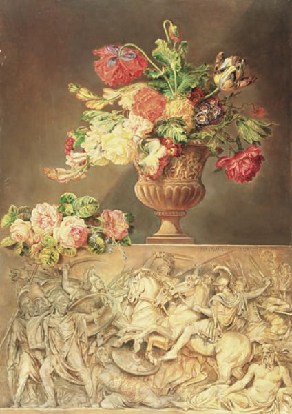 | Composizione di fiori su bassorilievo della battaglia di Arcis-sur-aube | |