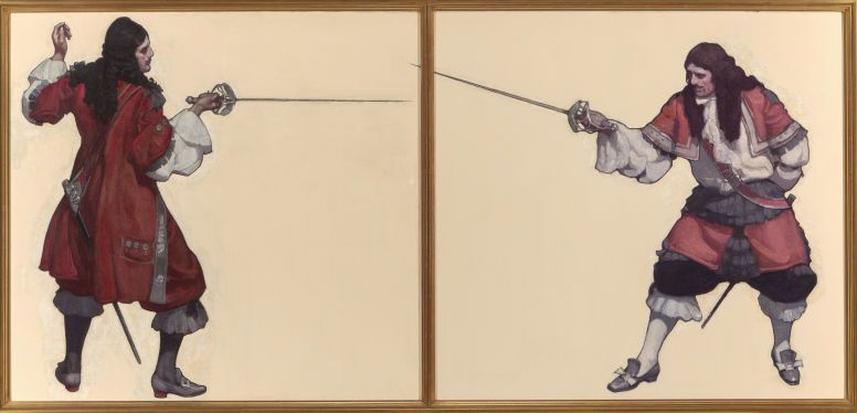 Two Men Dueling with Swords (diptych), Ladies' Home Journal story illustration